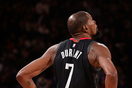 虎扑02月22日讯 NBA常规赛,火箭对阵尼克斯的比赛正在进行中。第四节比赛中,杜兰特关键时刻又被吹进攻犯规,双方战平&火箭挑战失败。来源:虎扑